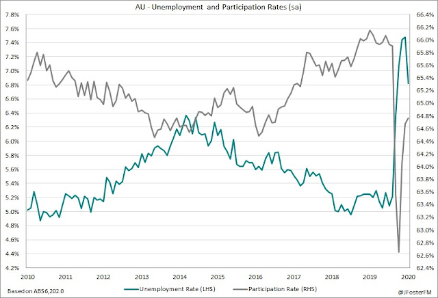 The Bank's preferred trimmed mean measure came in at 0.4% on the quarter to more than offset Q2's 0.2% fall, though the annual pace held steady at 1.2%. Inflation is currently a secondary consideration for the RBA relative to its full employment objective, but this outcome only adds weight to the widespread expectation in the markets that the Board will announce a significant easing in its monetary policy stance on Tuesday. The expecation is the the Board will cut its rates structure by 15 basis points to 0.1% across the targets for the cash rate and 3-year Australian Government bond yield and on the Term Funding Facility. In addition, given the recent speech from Governor Philip Lowe that highlighted the importance of balance sheet expansion, it is likely that the Board will announce its intention to buy government bonds in the 5 to 10-year maturity range. Markets have been speculating about the possibility of a target of $100bn for these purchases, though my read on the situation is that it is unlikely to go down the path of a defined target, with the focus instead to be on retaining maximum flexibility to adjust purchases across the curve in these uncertain times as required, dictated either by economic conditions or market functioning and more on this will be covered in next week's preview.