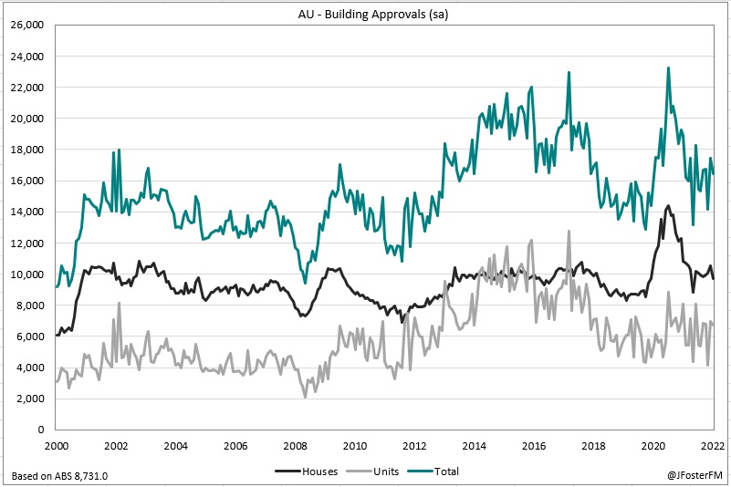 - Unit approvals declined modestly by 3.1%m/m to 6,734 to be down by 16.6% over the year.