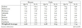 The chart, below, shows the results for established houses across the capitals in Q2 and over the year. The weakness over the past year has been broad based, though most focus attends Sydney and Melbourne given they are the two largest markets. The annual pace of decline in Sydney retracted from -11.0% in Q1 to -10.1%, while in Melbourne it remained at -10.5%.