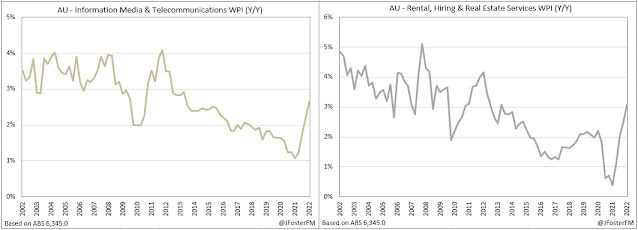 By broad industry sector, wages growth is running fastest in business services (2.6%Y/Y). Job mobility in these industries has lifted sharply over the Covid period as many people have left their jobs to take up other opportunities that have come about amid the economic recovery. This has led to increased competition for workers, putting upward pressure on wages.